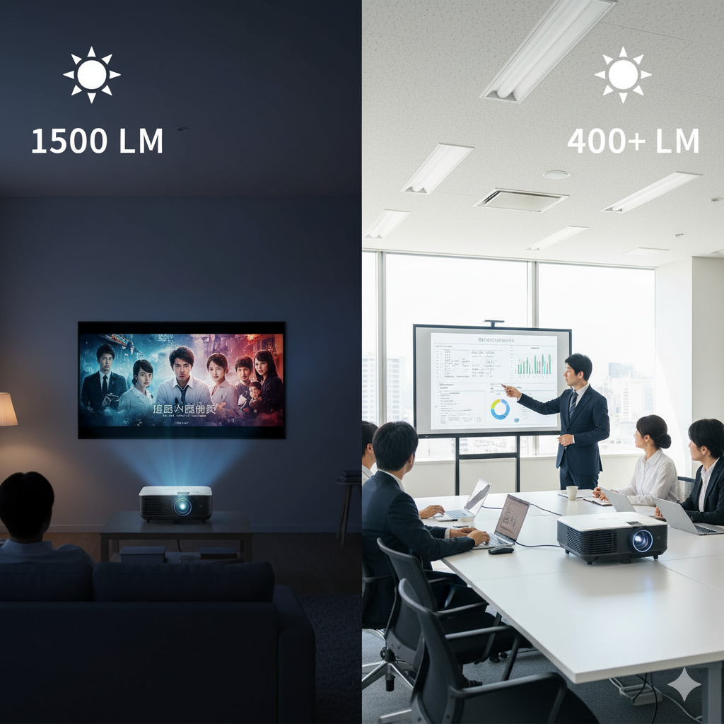 4,000lm前後: 外光が差し込む明るい部屋や、少し広めの会議室での使用に推奨されます。